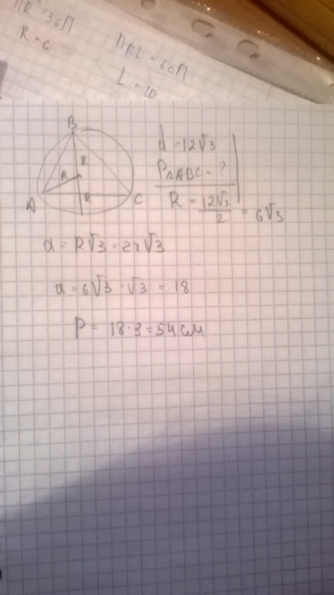 Диаметр окружности, описанный около правильного треугольника равен 12 корень из 3 см. Вычислите периметр этого треугольника.