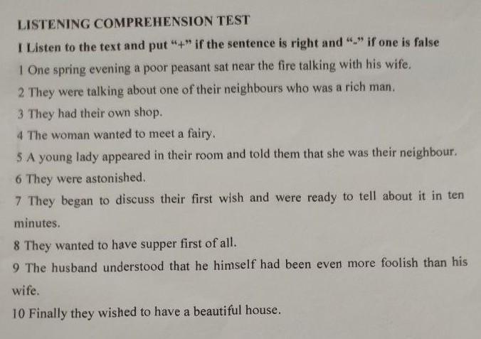 LISTENING COMPREHENSION TEST Listen to the text and put "4" if the sentence is right and "-" if one is false