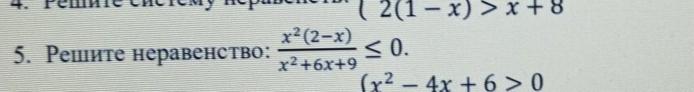 \dfrac{x^2(2-x)}{x^2+6x+9}\leq 0\ \ \ \to \ \ \ \dfrac{x^2(x-2)}{(x+3)^2}\geq 0\\\\\\x_1=0\ ,\ x_2=2\ ,\ x_3=-3\\\\\\znaki:\ \ \ ---(-3\, )---[\ 0\ ]---[\ 2\ ]+++\\\\x\in \{\ 0\ \}\cup [\ 2\ ;+\infty )