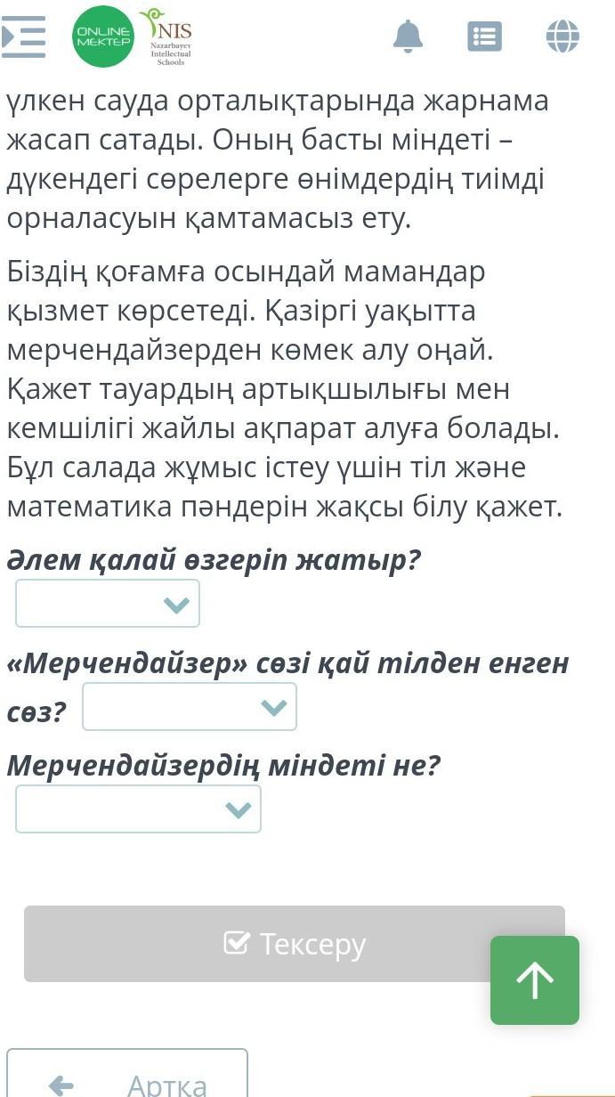 Мәтін мазмұны бойынша дұрыс жауапты белгіле.