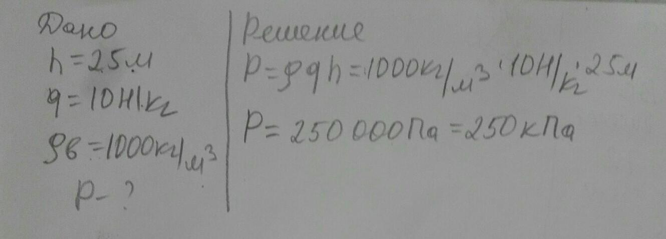 Тело погрузили в воду на глубину 25 м. Определите давление воды на этой глубине? (ответ запишите в кПа)