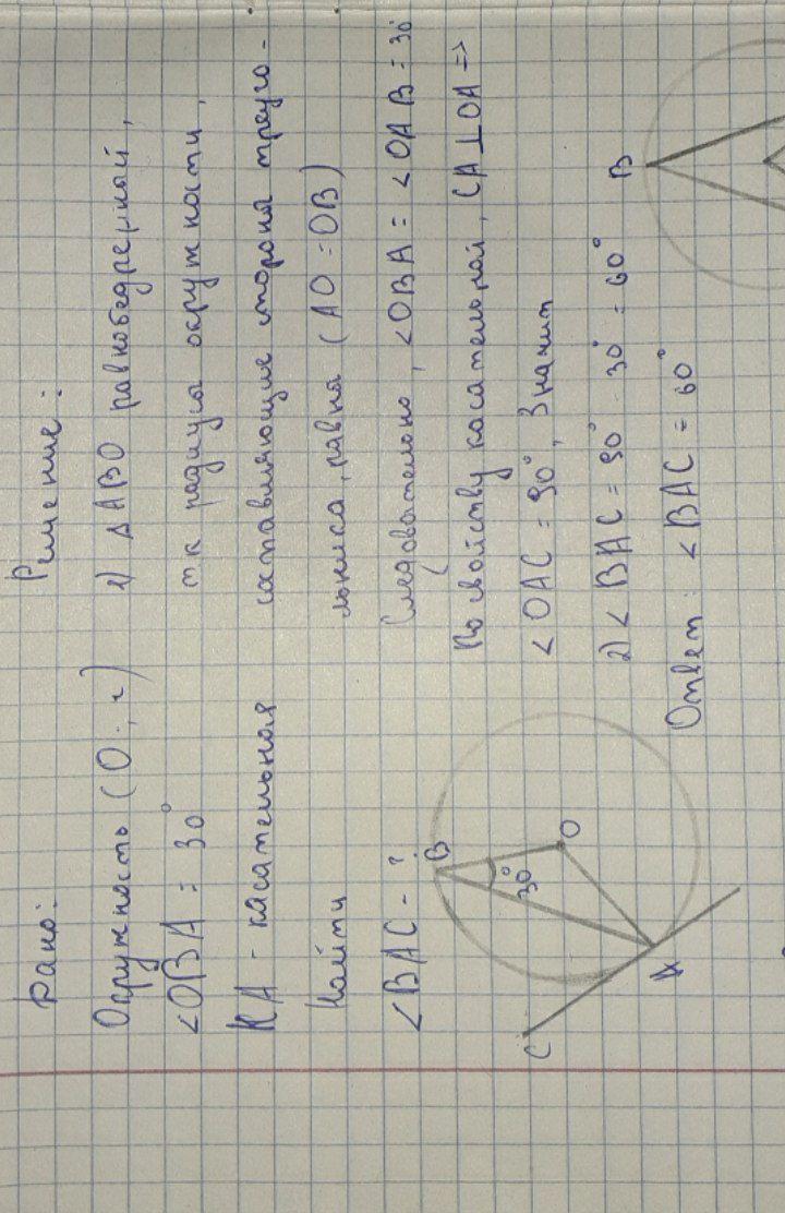 1. СА — касательная к окружности. Вычислите градусную меру угла ВАС.