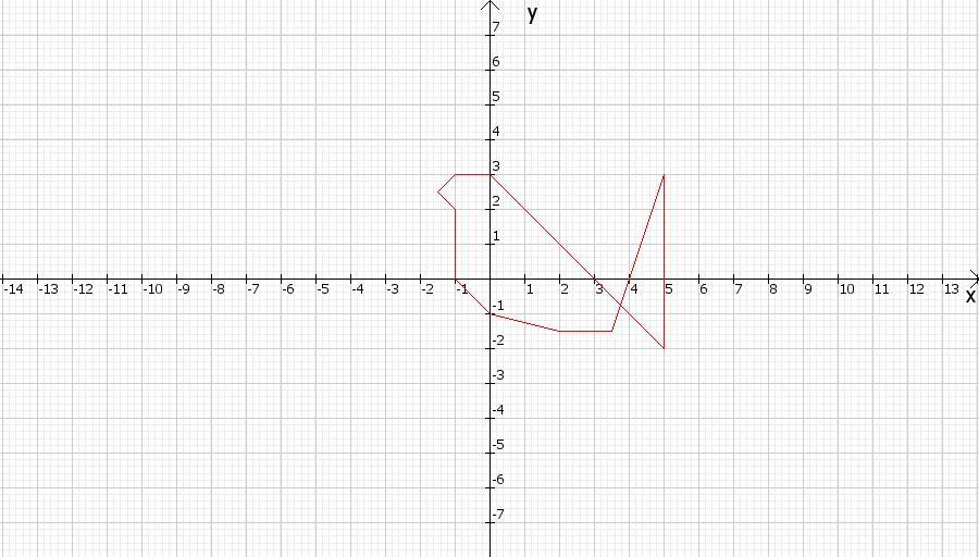 Помогите! Координаты точки, должен получиться Снегирь (5; -2), (0;3), ( -1;3), (- 1, 5;2,5), ( -1;2), (-1;0) (0;-1), (2;- 1,5), (3,5; -1.5), (5;3)