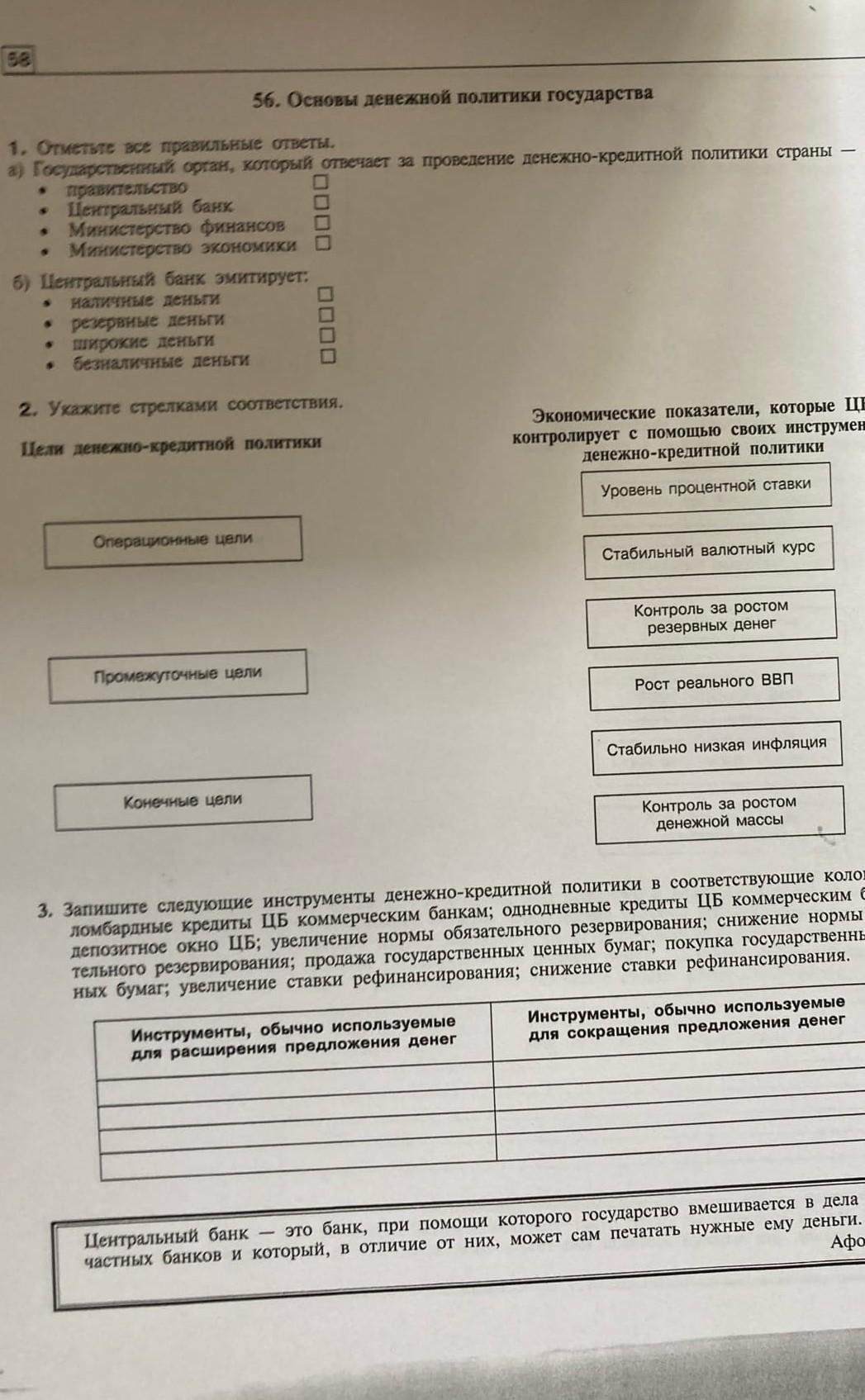 Ответ:1-Министерство финансов б) Наличие деньги 2-оперативные цели контроль за ростом деняг конечные цели-контроль за ростом денежной массы.