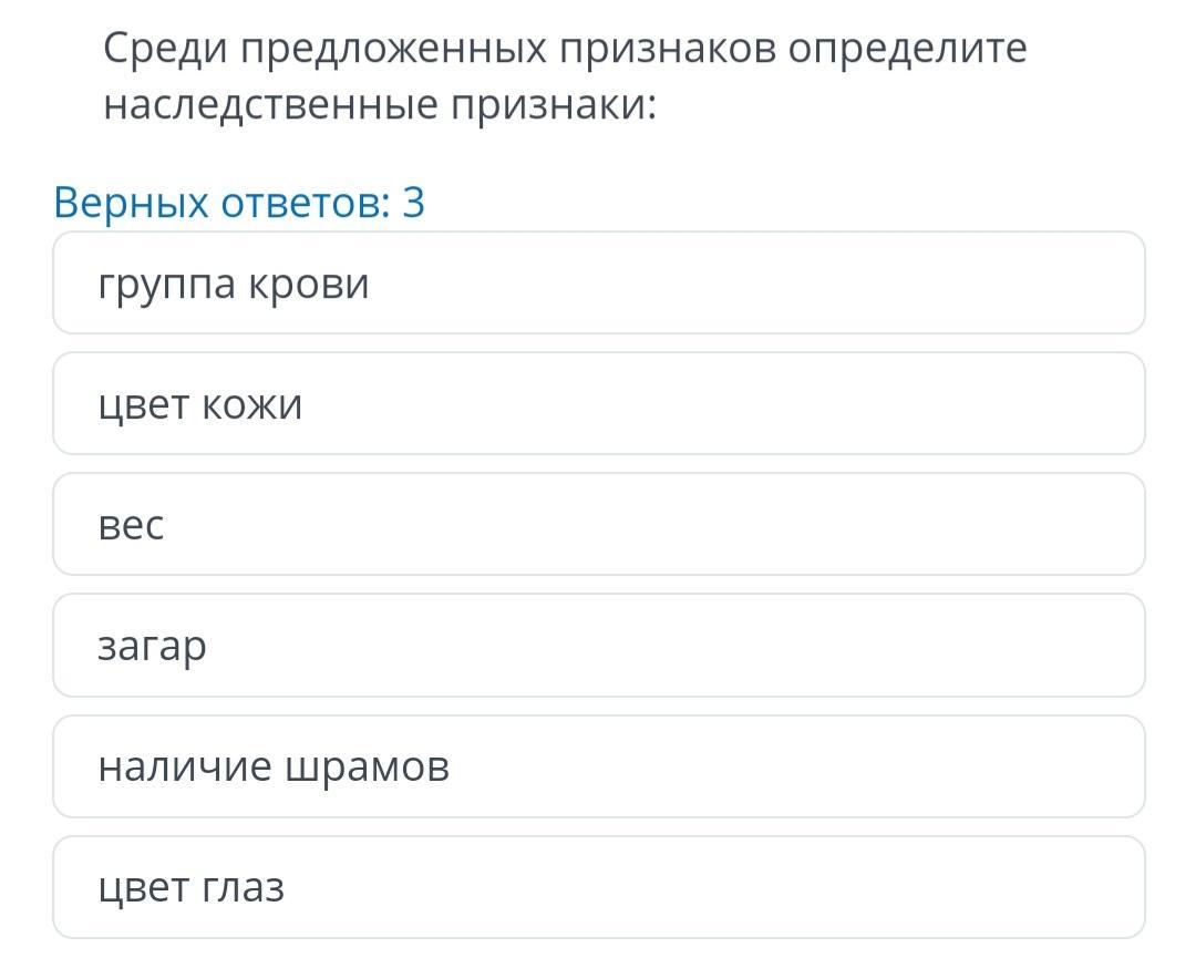 1.Цвет кожи 2.Непрерывная изменчивость -рост,Дискретная-группа крови