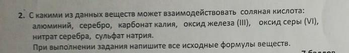 2. С какими из данных веществ может взаимодействовать соляная кислота:
