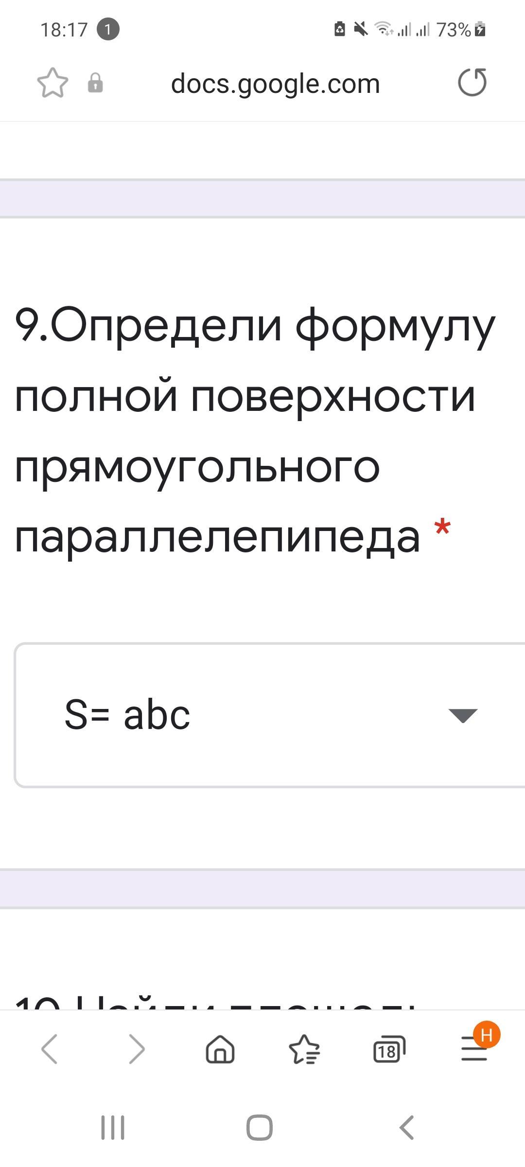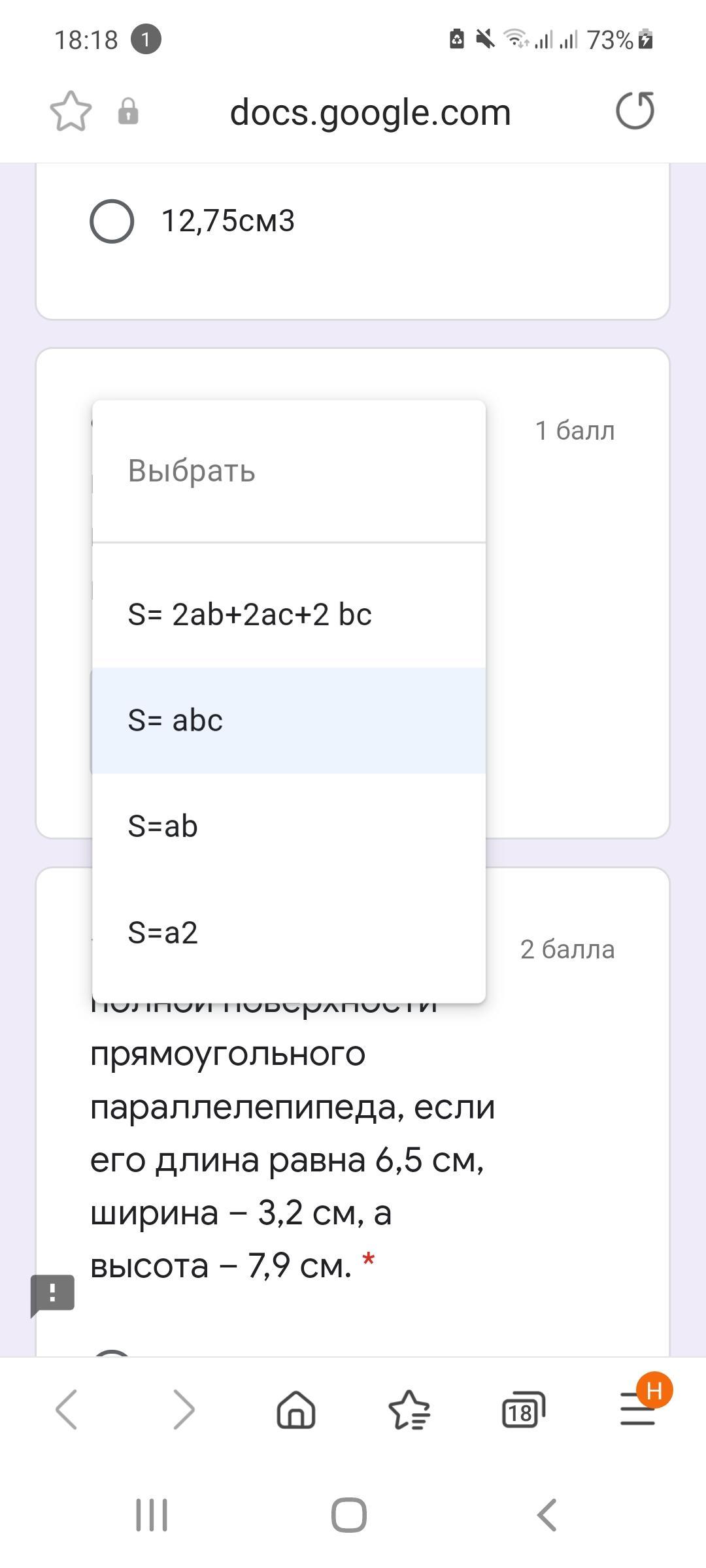 Формула полной поверхности прямоугольного параллелепипеда S=2ab+2bc+2ac или 2(ab+bc+ac)