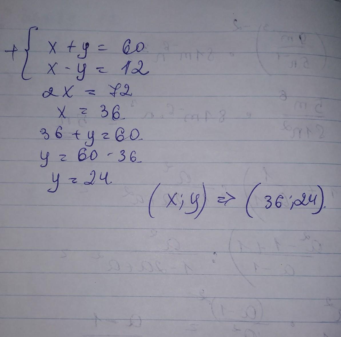равна 60, а их разность 12. Найдите эти числа.