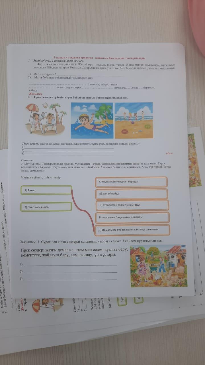 2) Жазда адамдар дем алу үшін күнге күйеді