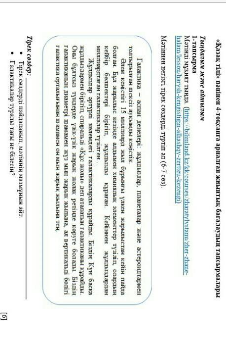 тірек сөздер: галактика ,аспан денелері, планета ,құс жолы