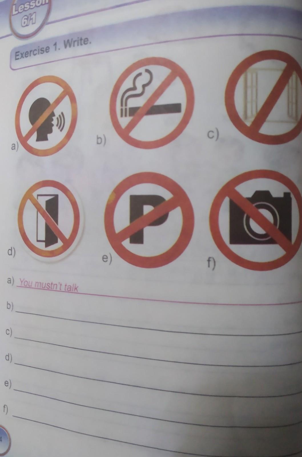 В данном задании нужно писать, используя только первый пункт объяснения, потому что на картинках показаны запреты ( т.е. правила, того, чего делать нельзя)