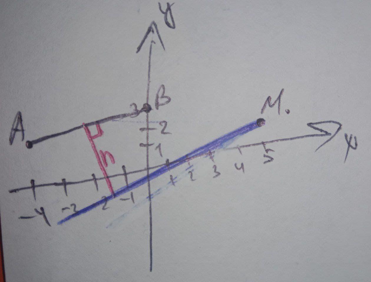 позначення на кординатній площини точки А (-4 2) В (0 3) Москва ( 5 2) Проведіть пряму AB через точку М проверить пряму n перпендикулярно до АВ