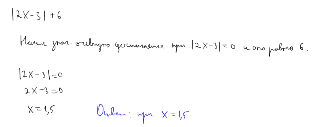 При каком значении x выражение |2x-3|+6 принимает наименьшее значение? Ответ:_____Подскажите, пожалуйста, с решением.