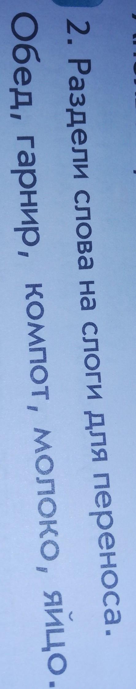 О-бед, гар-нир, ком-пот, мо-ло-ко, яй-цо