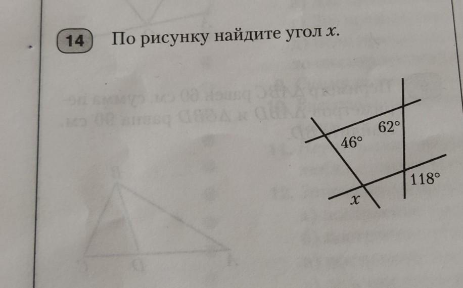 угол смежный x =46°(как внутренние разносторонние), отсюда x=180-46=134°