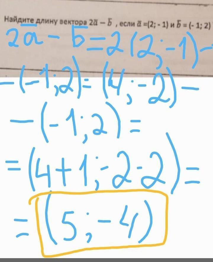 тогда длина вектора с найденными координатами (5;-4) = √(5²+(-4)²)=√(25+16)=√41
