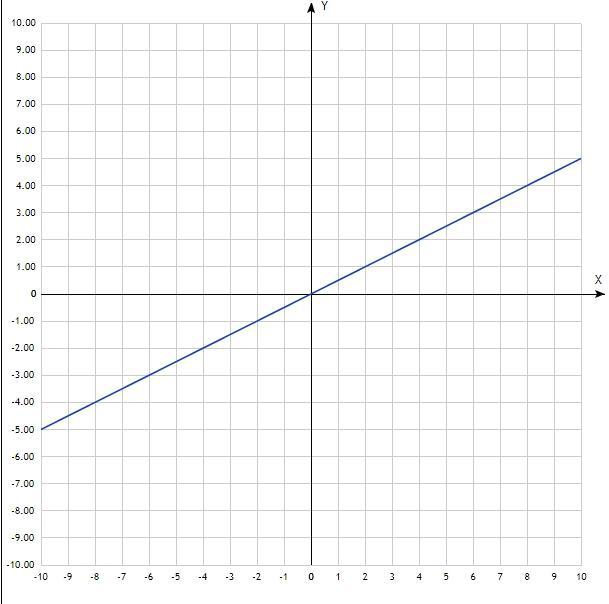 График - прямая линия, проходит через начало координат. Придать значения х, вычислить значения у, записать в таблицу: