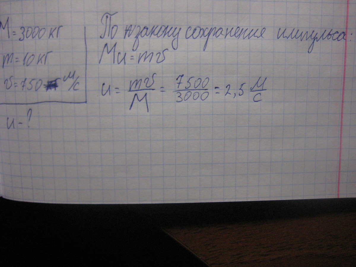 Из орудия массой М=3 т,вылетает в горизонтальном направлении снаряд массы m=10 кг со скоростью v =750 м/с.Какую скорость получает орудие при отдаче?