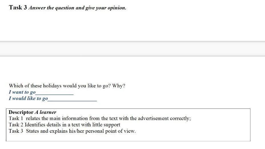 Task 3 States and explains his/her personal point of view. I would like to go__________________I want to go______________ ХЭЛП СОЧ!!!