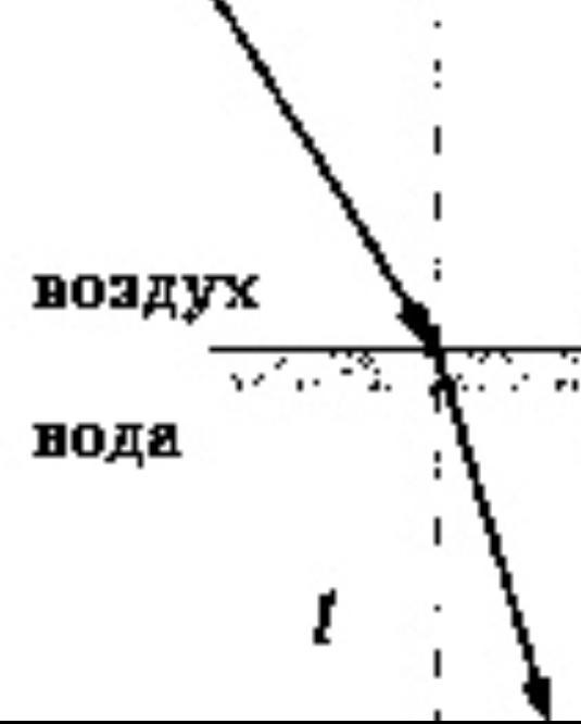 луч света падает на поверхность воды. начертите ход луча, после прохождения границы раздела двух сред