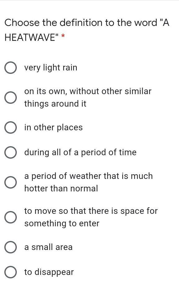 Heatwave — a period of weather that is much hotter than normal
