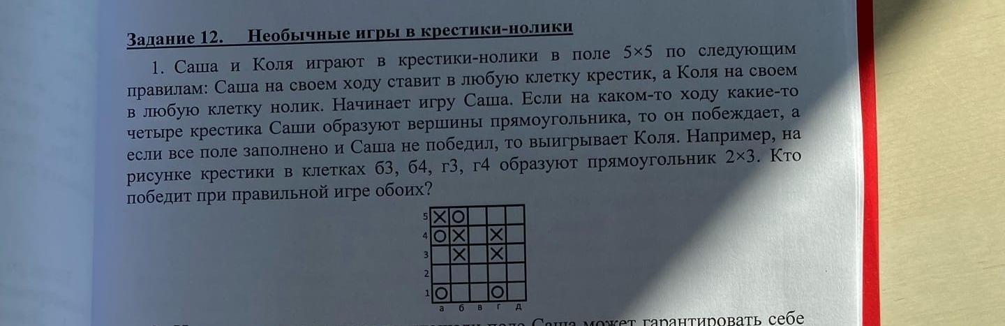 Саша победит, достаточно по середине поставить еще 2 крестика, т.к Саша первый ходит.