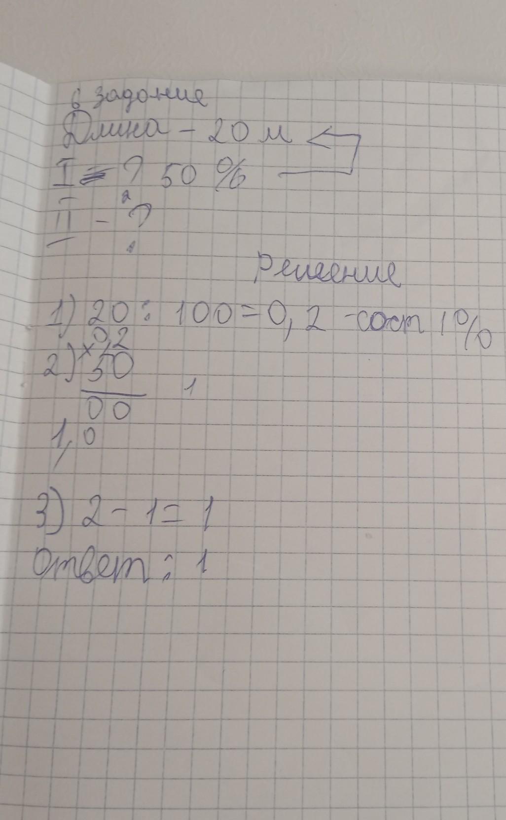 1) 20*50/100=10м длина первой