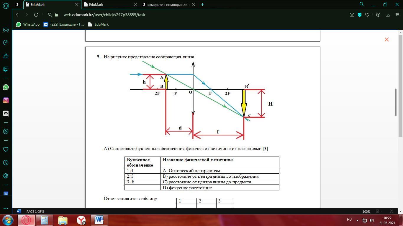 В) Измерьте с помощью линейки фокусное расстояние, ответ запишите в СИ, округлив его до десятых ______________________________________________________