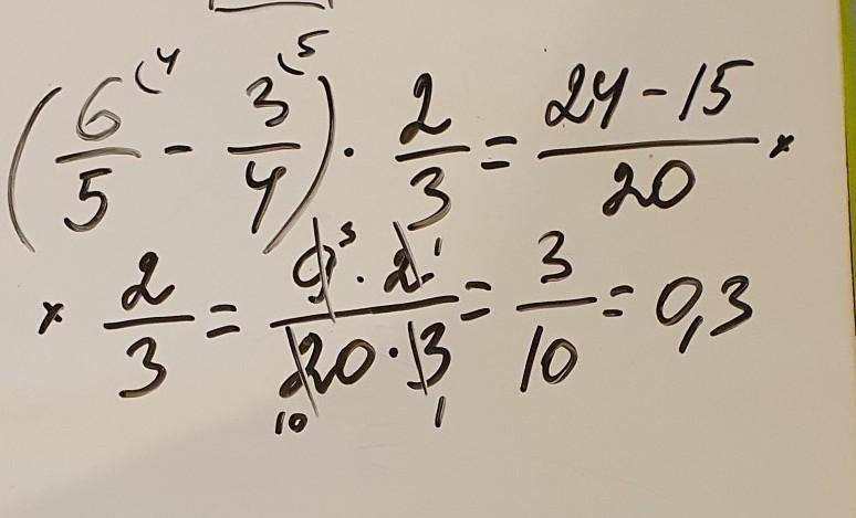 (6/5-3/4) =24/20-15/20=9*2/20*3=3/10