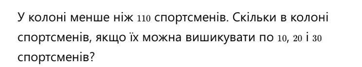 Число спортсменов делится на 10 ,на 20 и на 30. значит минимальное число спортсменов можем найти по методу НОК