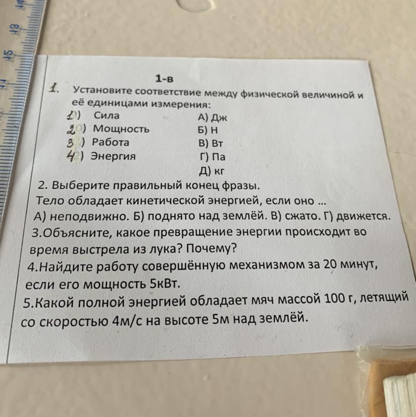 5. Еполн=Екин+Епот= 0,5mV²+mgh=m( 0,5*V²+gh)=0.1(0.5*4²+10*5)=5.8 Дж