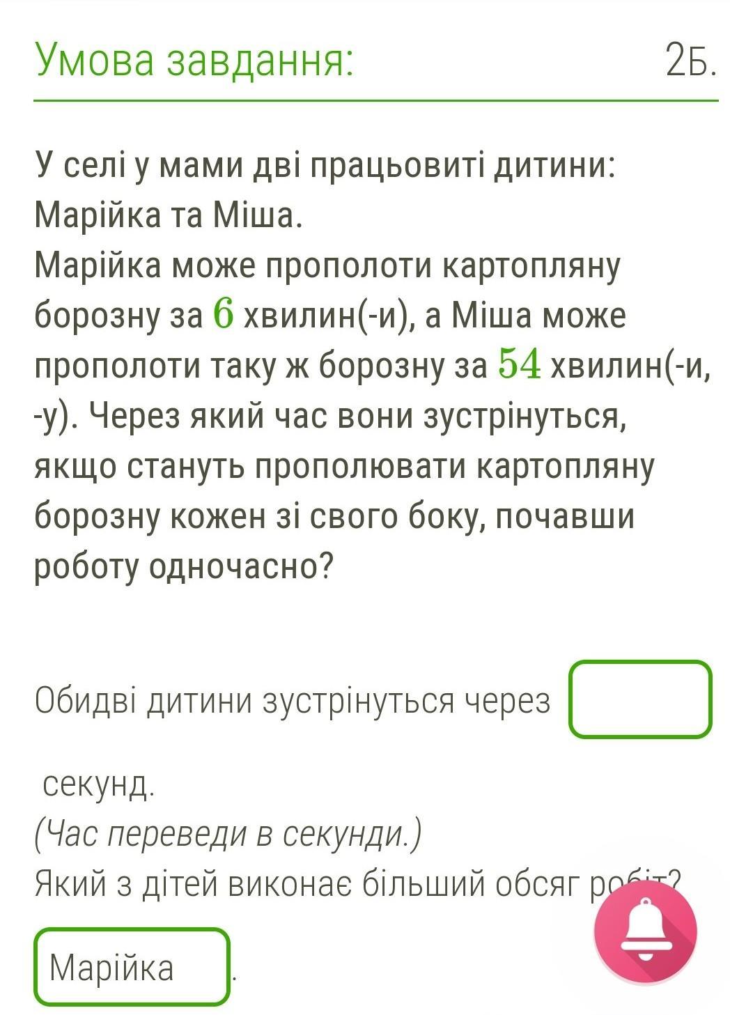 Скорость прополки Марийки равна 1/6, а скорость прополки Миши