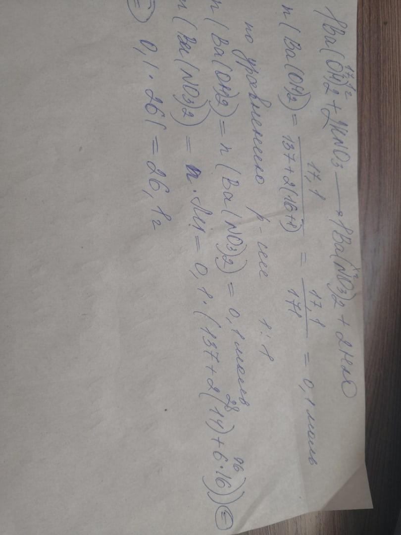 Определите массу соли, полученной при реакции нейтрализации 17,1 г гидроксида бария с азотной кислотой.