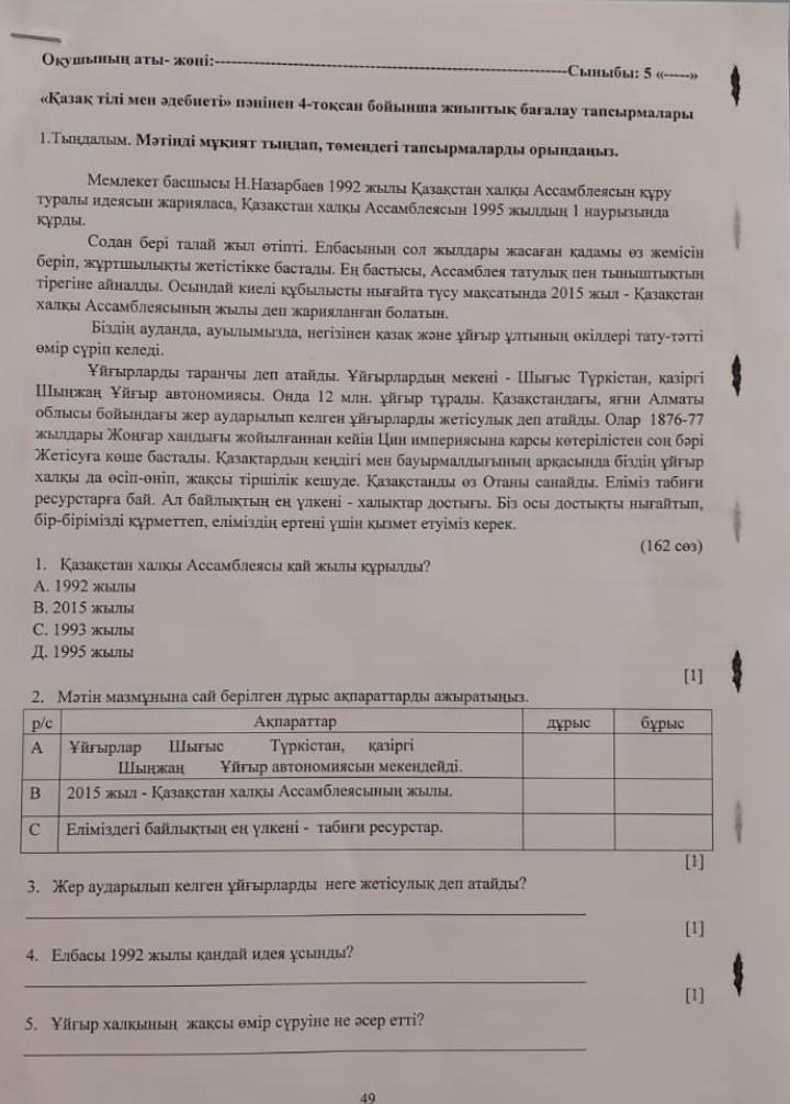 4)Елбасы 1992жылы Қазақстан халқы Ассамблеясының құруға идея жасады.