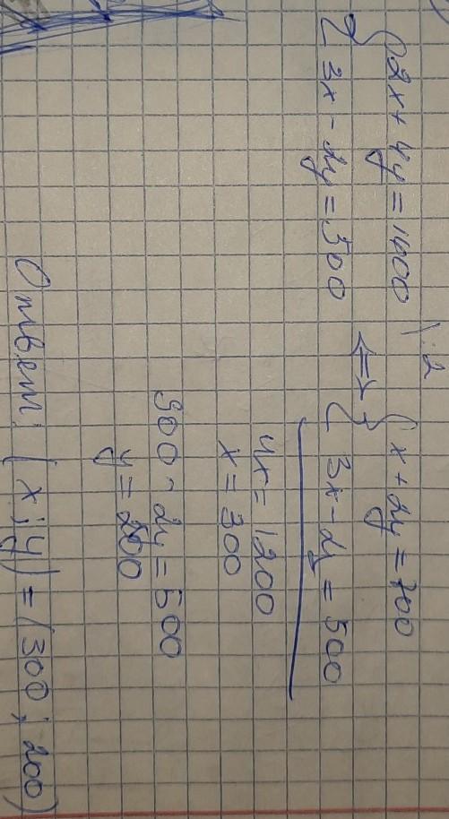 За 2 мадярков и 4 кг аrели инов заплатили 1400 тенге. Сколько стоит 1 кг кил. Долго виля фруктов, если 2 кг аfіельсинов на 500 тенге дешевле, чем 3 кг мандар.