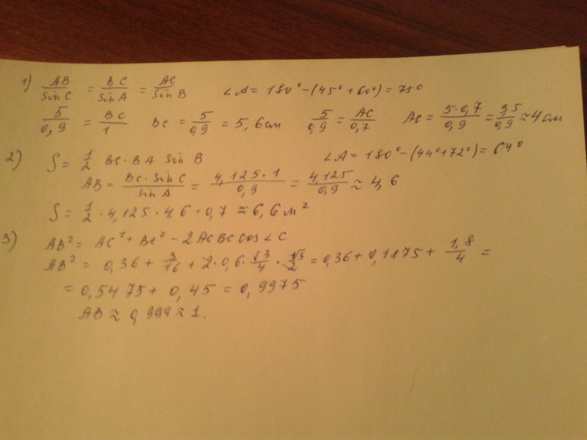 1)Дано: AB=5см, <B=45градусов, <C=60градусов