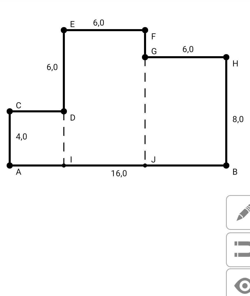 Обозначим ключевые точки фигуры буквами, как на рис. в приложении - для удобства.