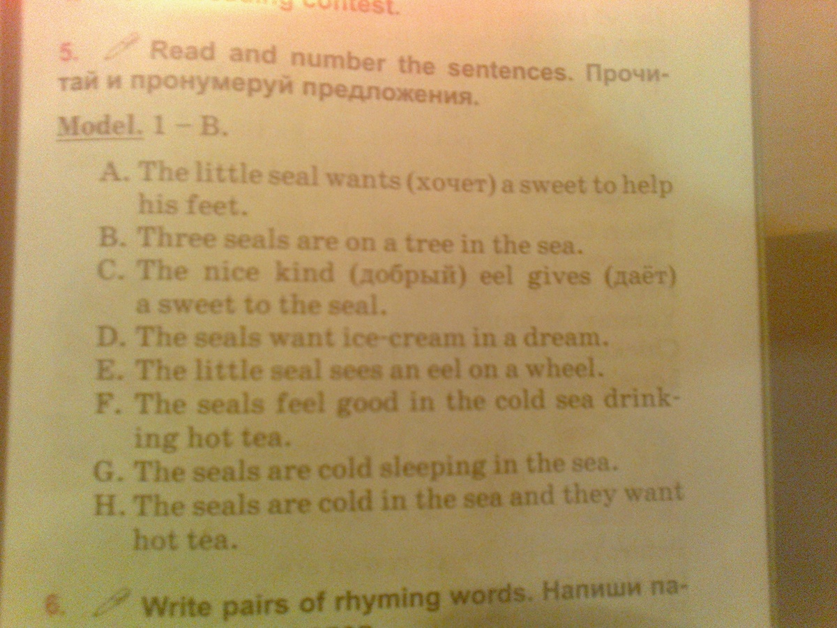 и ещё :напишите пары рифмирующих слов:seal.wheel.eel.feel.tree.sea.tea.see пожалуйста