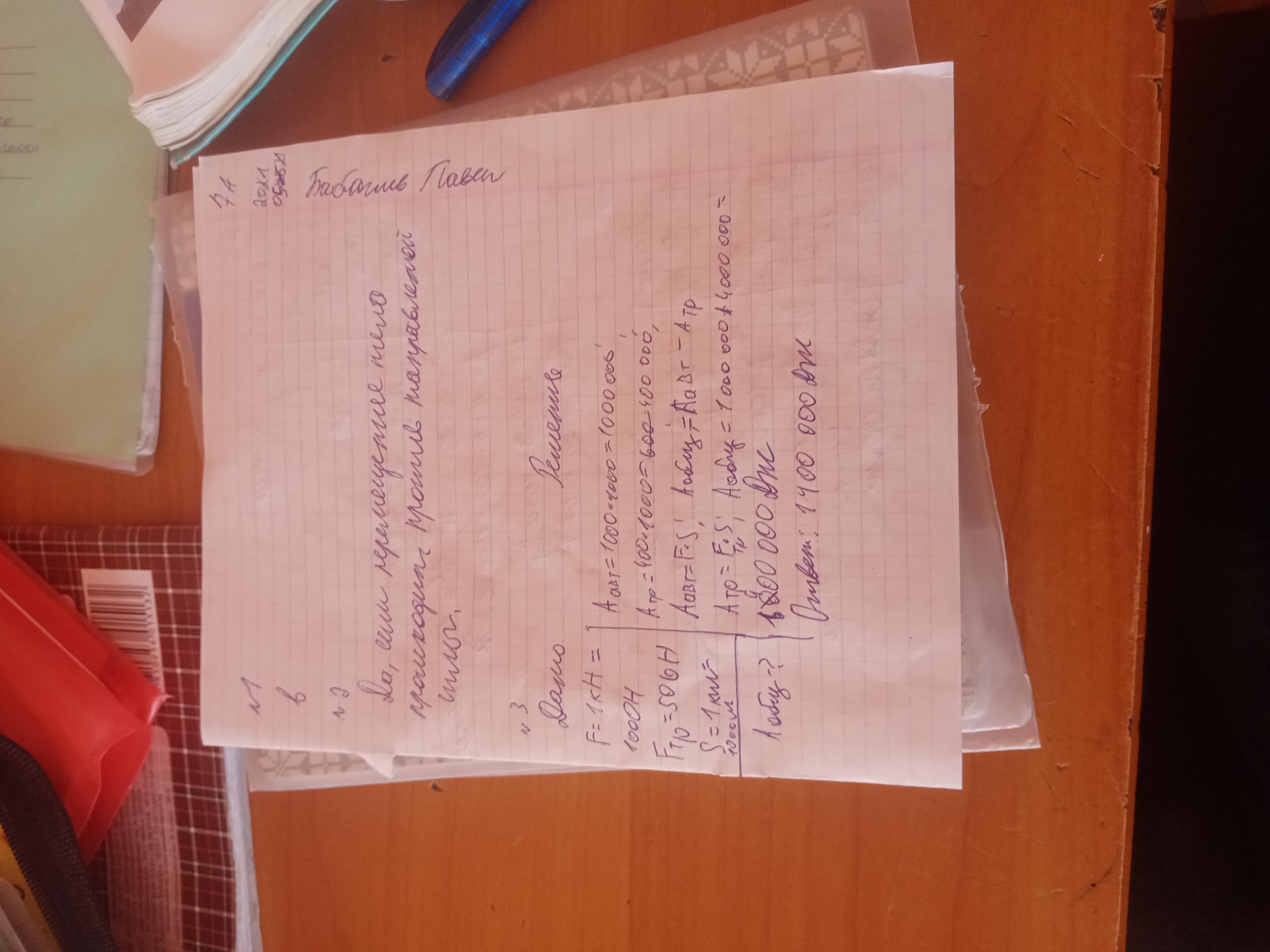 двигателя F = 1,0 кН и сила трения Fтр 500 Н.