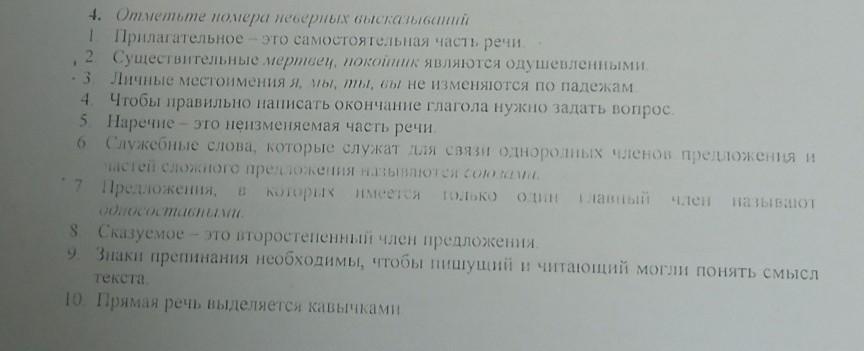 отметить неверные утверждения