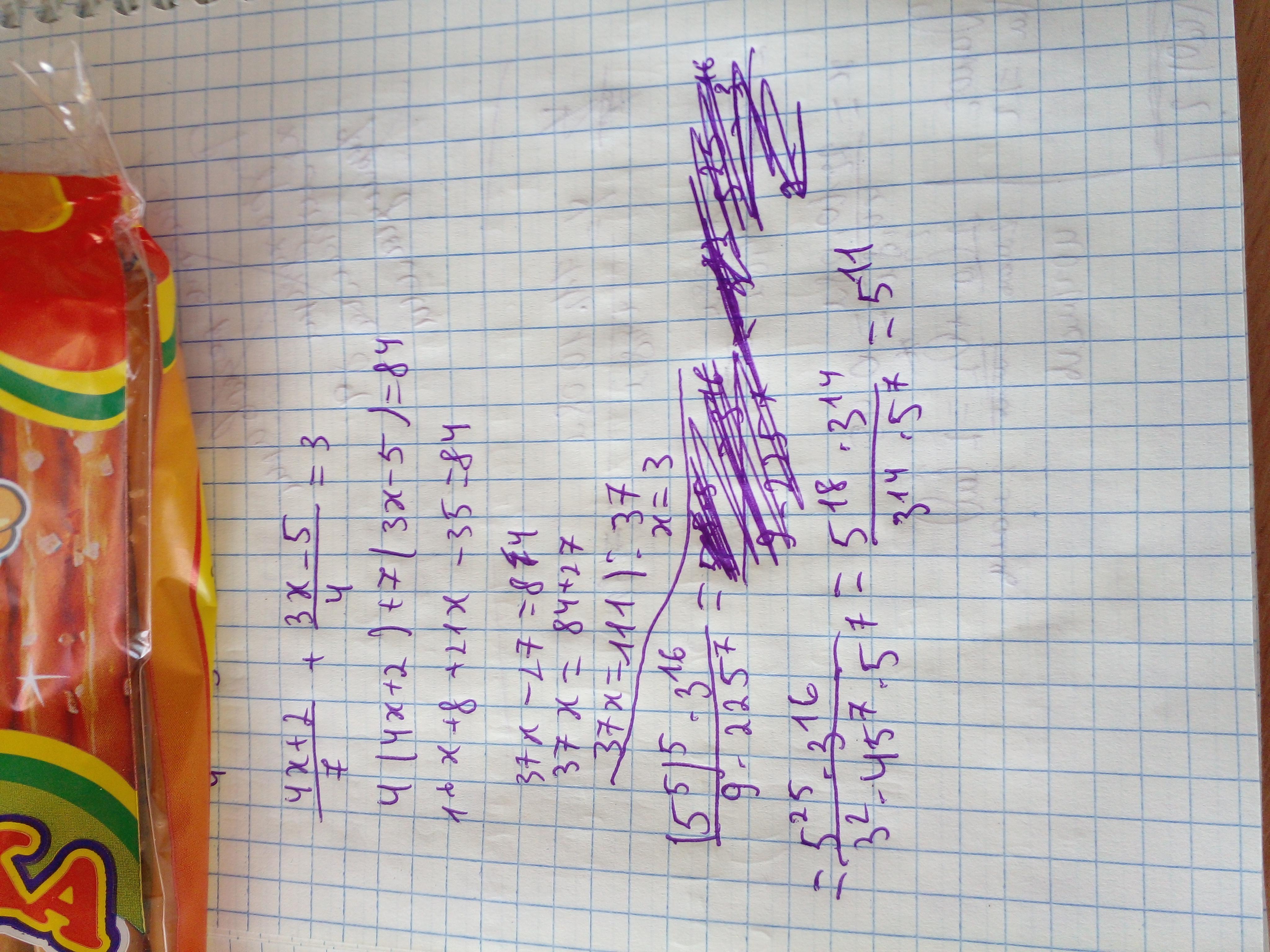 4х+2/7+3х-5/4=3 ищем общий знаменатель