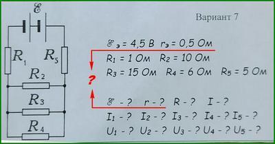 ℰ=4,5 B, r=0,5 Ом заданы в условии: