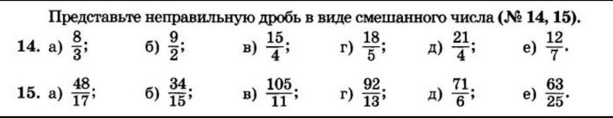 14. а) 2 ⅔; б) 4 ½; в) 3 ¾; г) 3 ⅗; д) 5 ¼; е) 1 ⁵/⁷