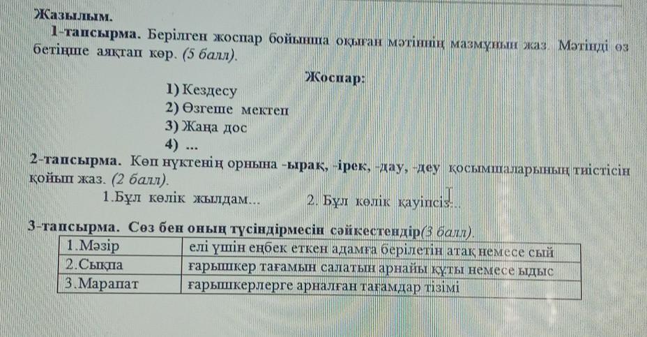 Отправь свой текст и я сделаю 1 тапсырма