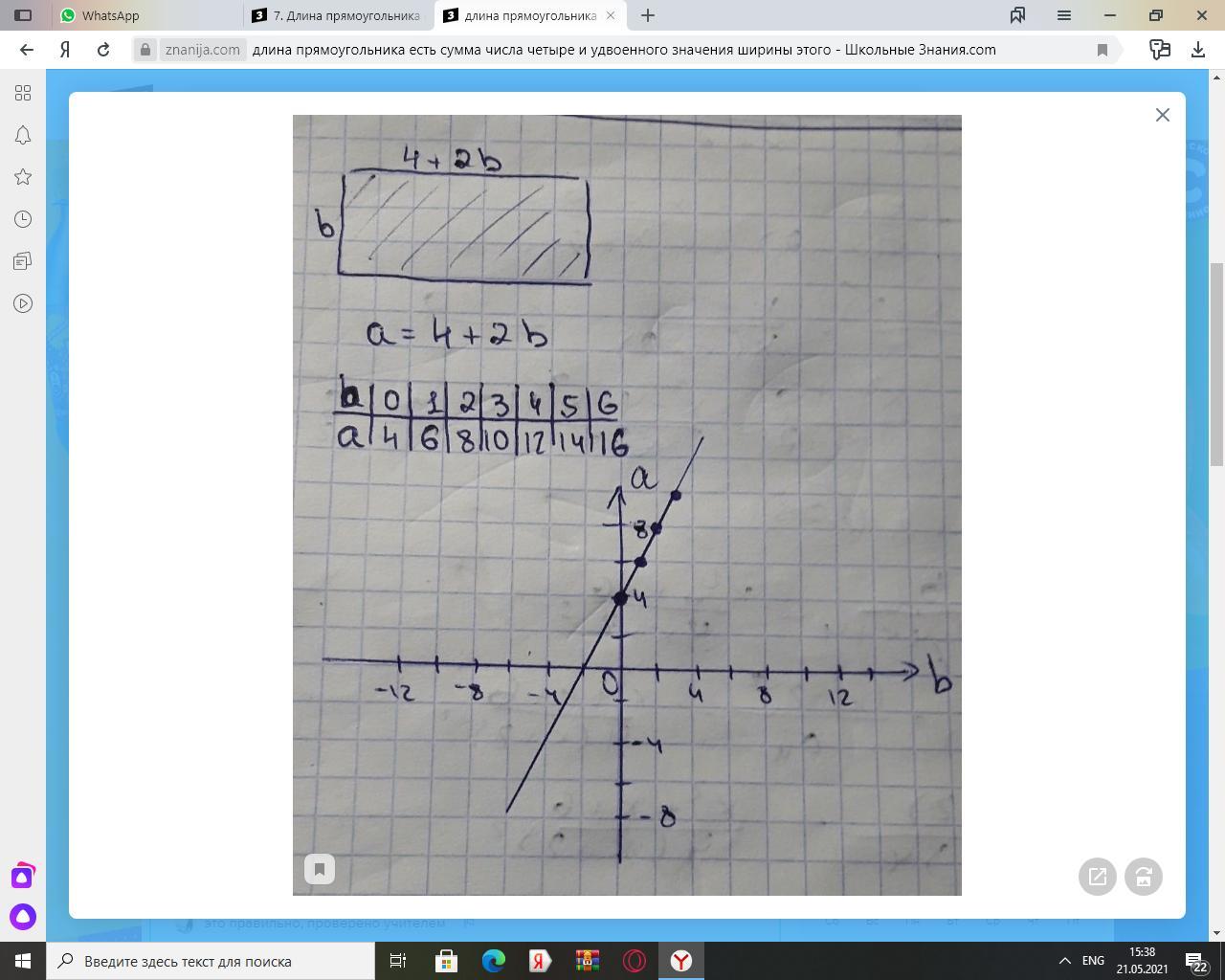 7. Длина прямоугольника есть сумма числа пять и удвоенного значения ширины этого