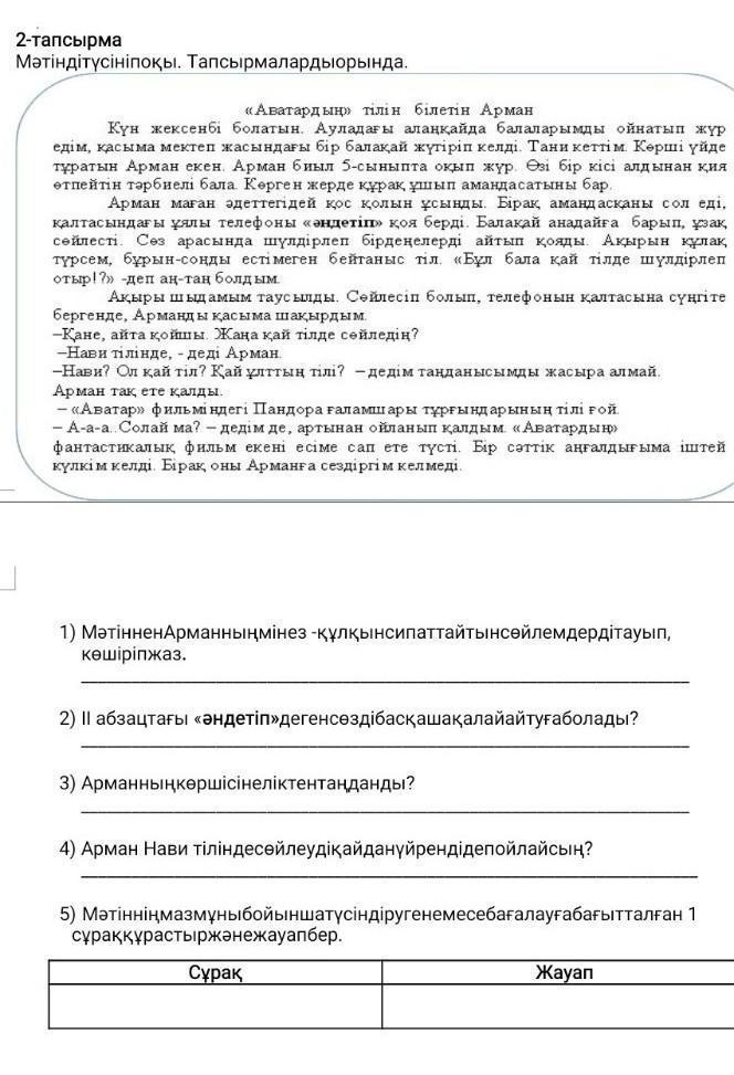 3) Арманың көршісі Арманның <Нави >тілінде сөйлегеніне таң қалды