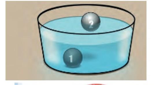 На вид объём у этих шаров одинаковы, но объём вытесняемой ими воды разные. Один шар тяжёлый, цельнометалический, а другой лёгкий, полый внутри. Поэтому первый тонет, а второй-нет