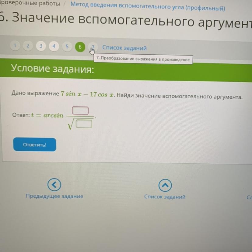 f (x) = 13√ 2 ( sinx cos t - cosx sin t ) = 13√ 2 * sin(x - t) , де cos t = 7 / 13√2 i