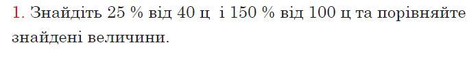 Знайдіть 25 % від 40 ц і 150 % від 100 ц та порівняйте знайдені величини