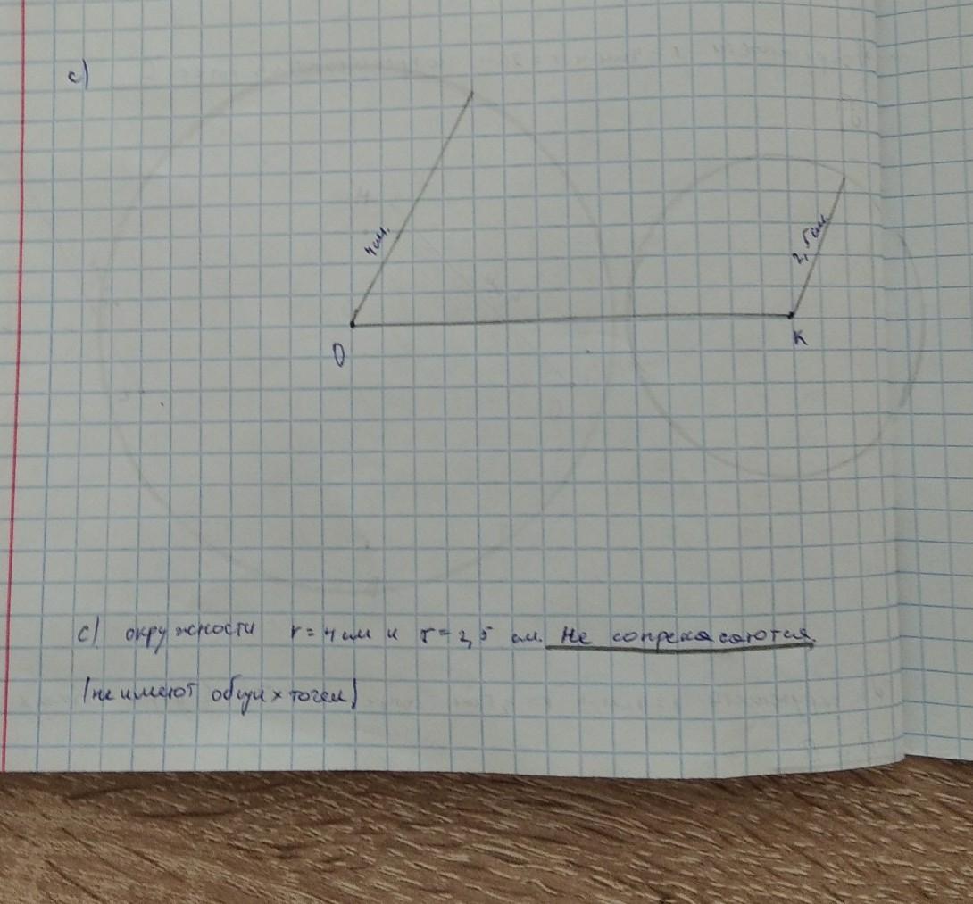 Сколько общих точек имеют окружности в каждом из этих случаев.